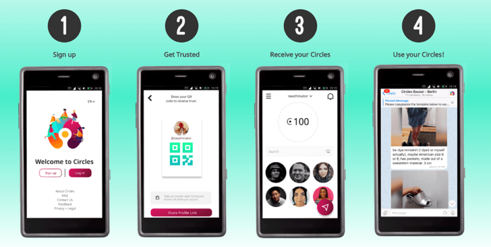 Images above: 1) Tzoumakers, 2) Open Food Network, 3) CoopCycle, 4) Circles UBI