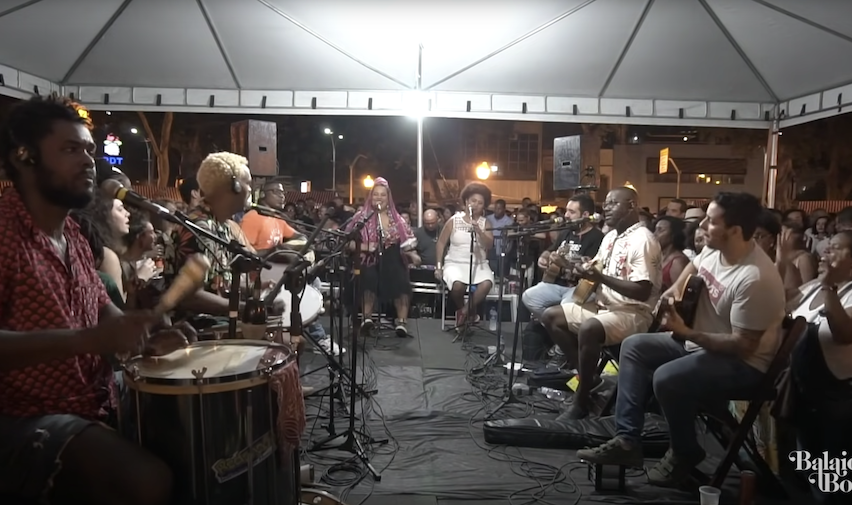 Formed by some of the leading names of the contemporary samba scene in Rio de Janeiro, Balaio Bom has been on the road for 8 years and has been consistently performing in several neighborhoods of the city of Rio de Janeiro— Irajá, Penha, Grajaú and Centro. Every second Friday, one can witness their thrilling performance at Praça Tiradentes, with about three thousand people. The band is made up of Marina Iris, Marcelle Motta, Amanda Amado, Guaracy Cardoso, Tiago Misamply, Jorge Alexandre, Alex Primo, Gabriel de Aquino, and Daniel Aranha.