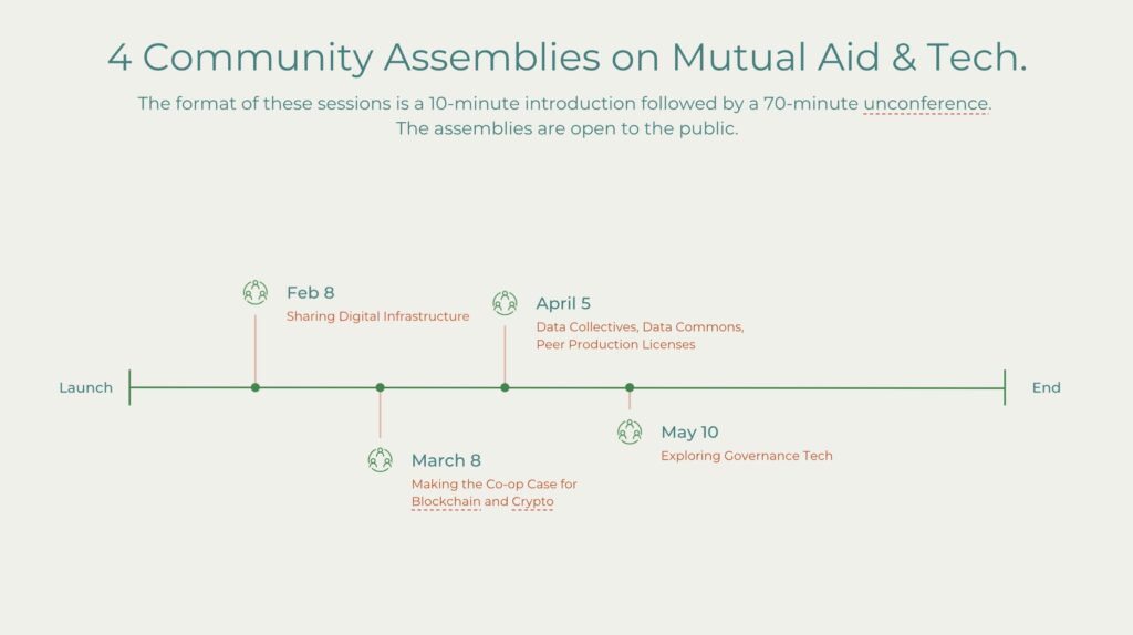 This community assembly focuses on the topics typically discussed under the umbrella terms of distributed technologies, web3, blockchain, and crypto. It aims to convene individuals and organizations seeking to demystify these complex concepts and technologies, which remain a mystery to many cooperative members. Rather than permitting rogue actors to dominate crypto and related domains, the assembly seeks to seed cooperative values of solidarity in these domains.